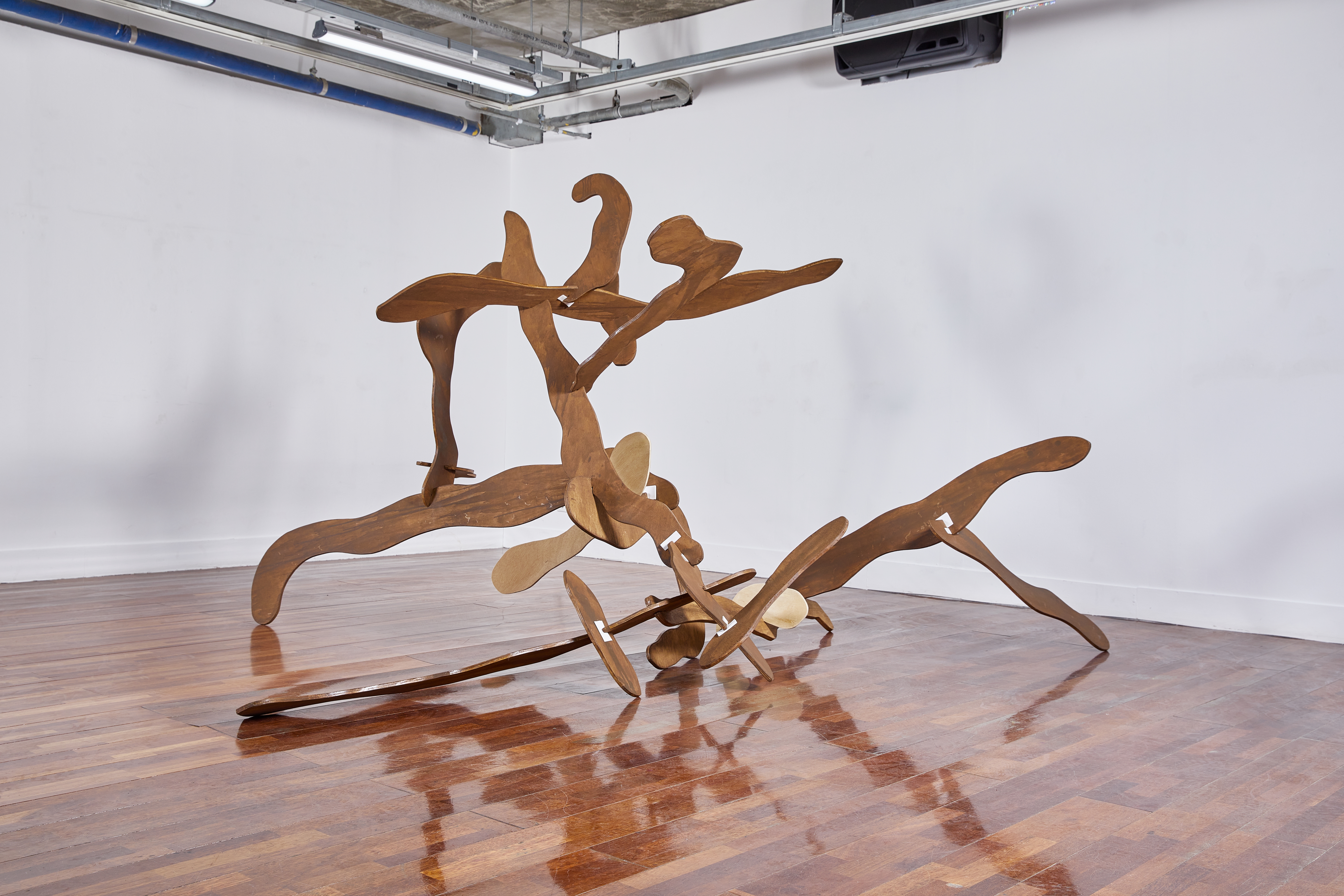 One panel that makes up the sculpture is a movement, inhaling and exhaling, and a body.