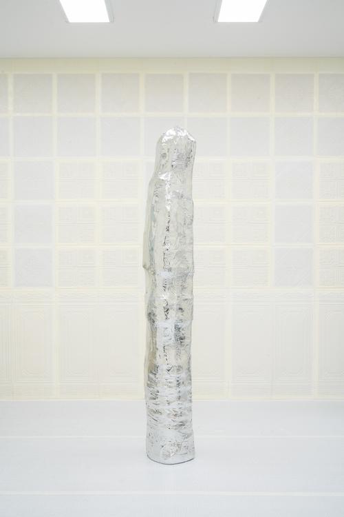 소금, 밧줄, 흙기둥 등의 재료를 사용한 전통 건축 제작법이나, 상징 작용으로 문화적 의미가 덧씌워지는 방식을 탐구했던 작가가 이번 전시에 소환한 것은 미국을 기반으로 한 미술사의 한 단편이다. 전시는 앤디 워홀의 사진 <Silver Clouds>(1966)에서 출발했다. 이 사진에는 은빛 포장지로 제작된 풍선이 가득하다. 당시 워홀은 작품을 만들며 풍선을 갤러리 밖으로 던지는 해프닝을 벌였다. 본인과 2차원 그림을 조롱하는자를 향한 답신으로 3차원 격자 물체를 겨냥하는 제스처를 취했다. 여기서 그가 구현한 ‘외피’와 ‘은빛'이 단순히 표면의 시각화만을 이야기하고 있다고 보기는 어렵다 은빛은 표면에 불과하지만, 물질과 미술형식의 역사, 매체가 지닌 영속성, 시각적 조건을 구성하는 구조 등 기저의 맥락을 깊게 둘러싼다.