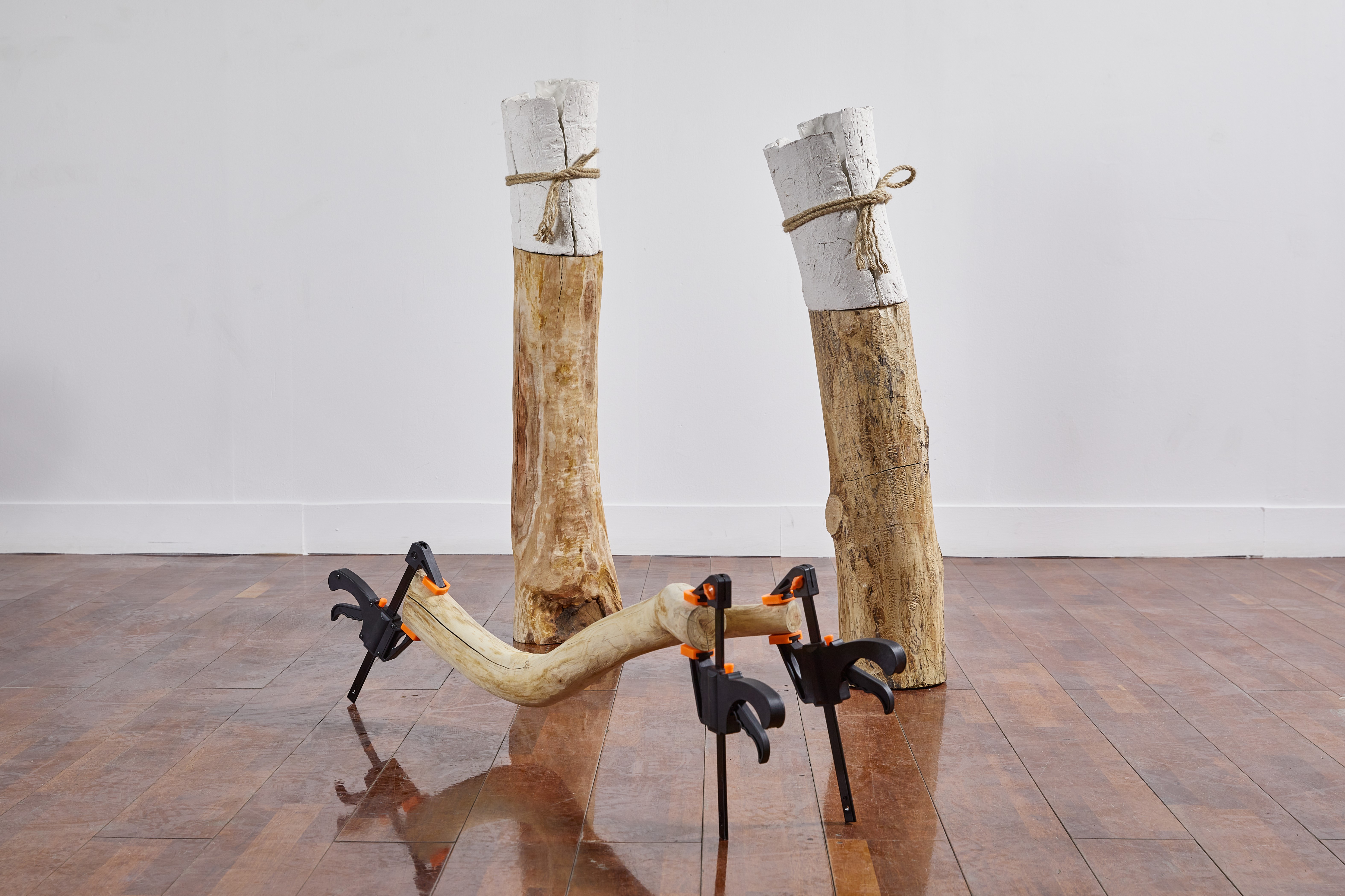 대패질한 나무토막, 떠낸 지점토, 노끈 planed wood piece, replicated paper clay, string